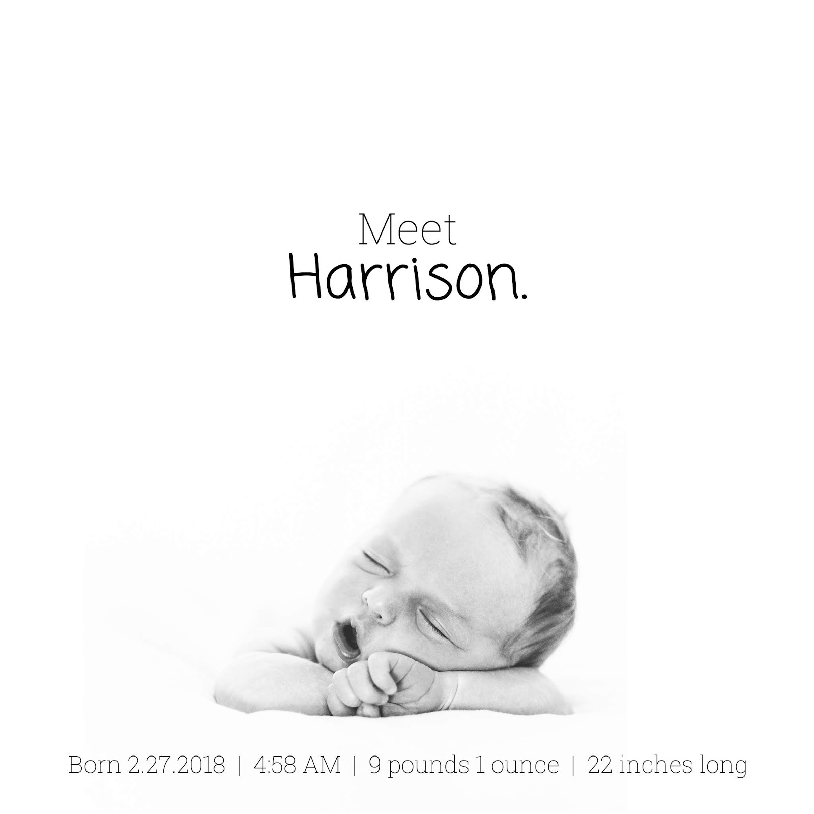 I debated on whether or not I was going to share his birth story, but the reason I wanted to share was to say that even if you have a tough first labor, it doesn't mean that your second will be that way. With Abe I pushed for 2.5 hours only to deliver with vacuum assistance and a 3rd degree tear. This time I pushed for maybe a minute and would not have torn at all except that Harrison's hand was up by his face when he was delivered and his elbow cost me a 2nd degree tear. But let me tell you from experience, there is a HUGE difference between a 2nd and 3rd degree tear. I was feeling better *down there* in a matter of a few weeks instead of a few months.So I'm incredibly grateful for how this labor went in comparison to the last one.